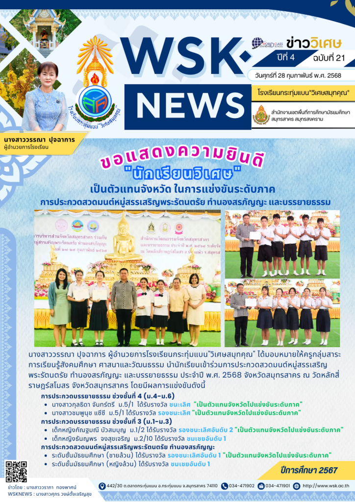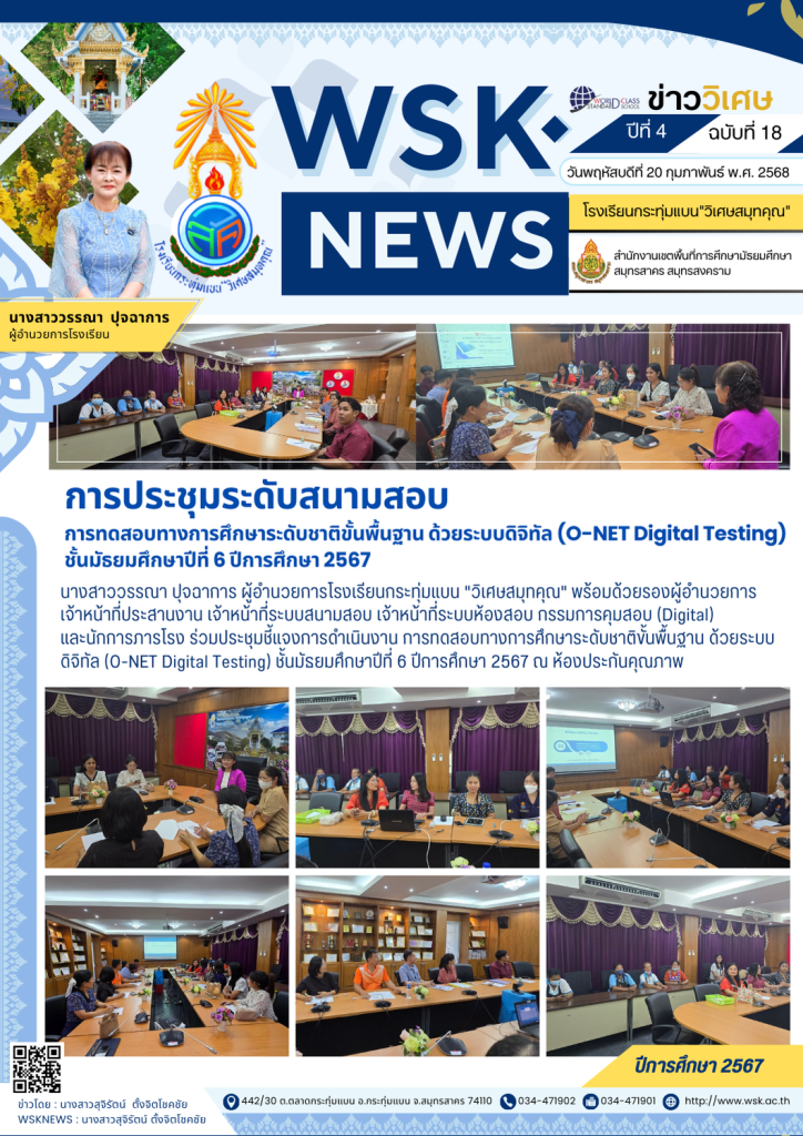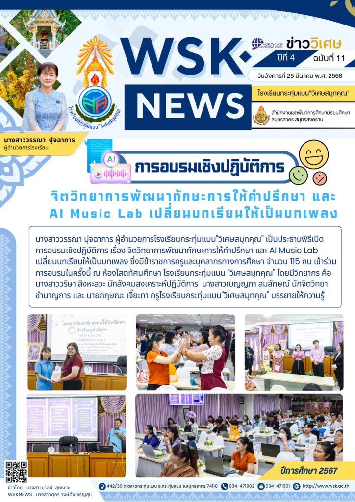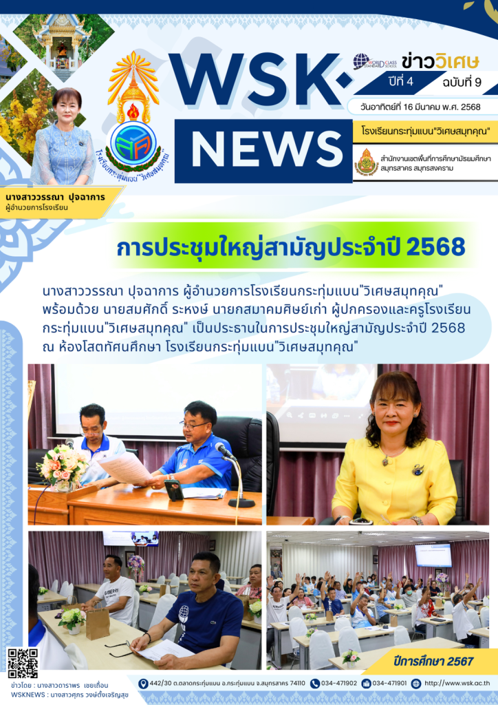 วันพฤหัสบดีที่ 3 เมษายน พ.ศ. 2568 นางสาววรรณา ปุจฉาการ ผู้อำนวยการโรงเรียนกระทุ่มแบน”วิเศษสมุทคุณ” คณะผู้บริหาร คณะครู และบุคลากรทางการศึกษา เข้าร่วมการประชุมครู ครั้งที่ 4/2568 ณ ห้องโสตทัศนศึกษา โรงเรียนกระทุ่มแบน”วิเศษสมุทคุณ” โดยได้กล่าวแสดงความยินดีกับ คุณครูชญาพัชชา แก่นนาคำ ในโอกาสย้ายไปปฏิบัติราชการ ณ โรงเรียนสมุทรสาครวิทยาลัย จังหวัดสมุทรสาคร ข่าวโดย : นางสาวสรัญญา ธีรวุฒิWSKNEWS : นางสาวศุภร วงษ์ตั้งเจริญสุข