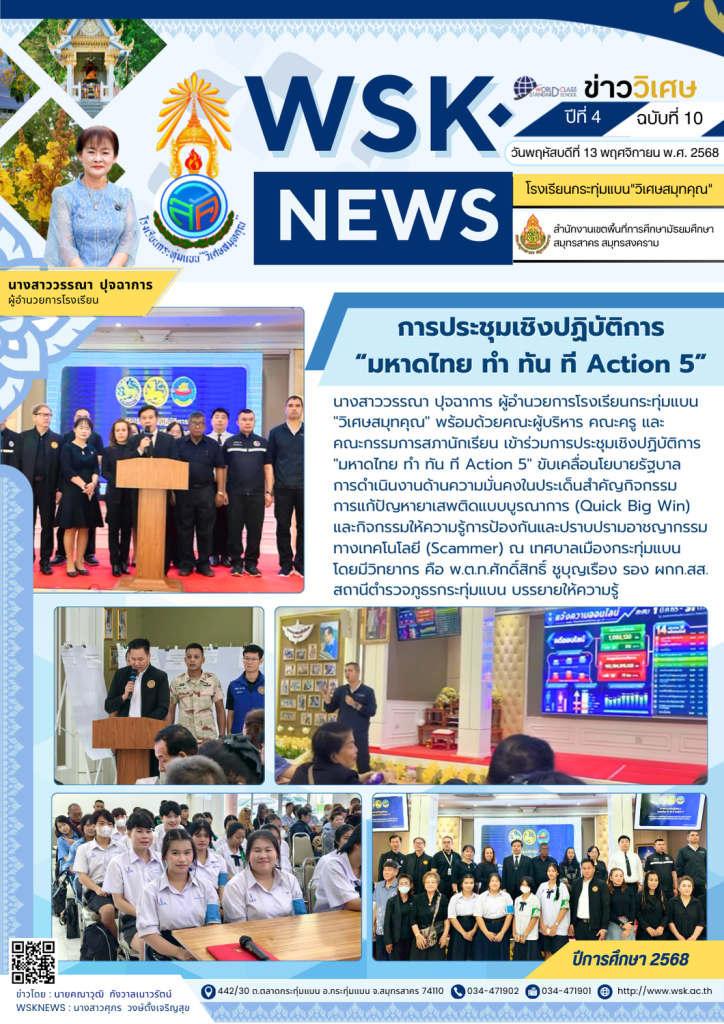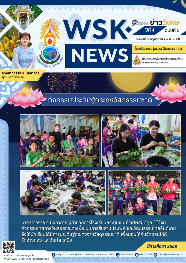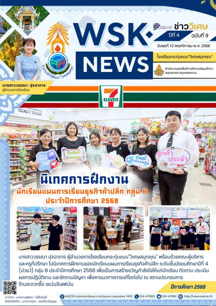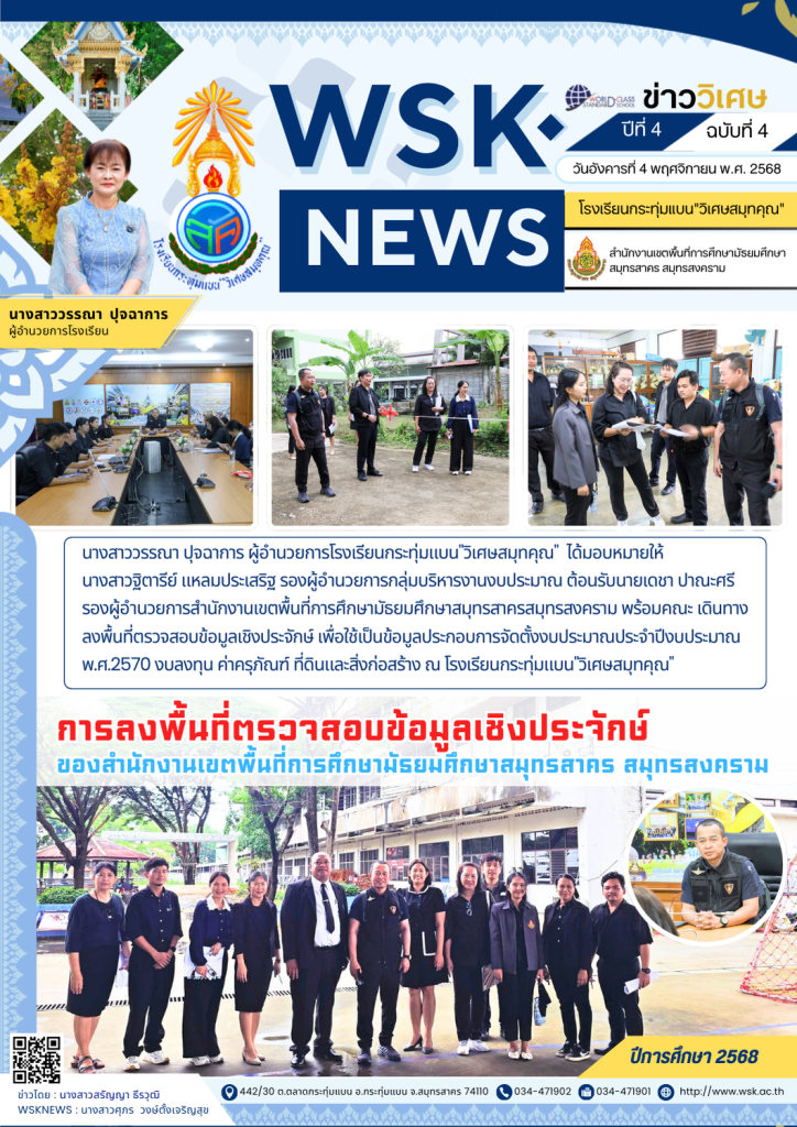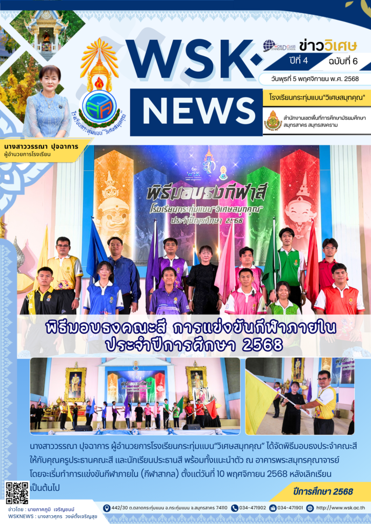 วันพุธที่ 19 พฤศจิกายน พ.ศ. 2568 นางสาววรรณา ปุจฉาการ ผู้อำนวยการโรงเรียนกระทุ่มแบน “วิเศษสมุทคุณ” ได้กล่าวแสดงความยินดีกับนักเรียนที่ เข้าร่วมโครงการเยาวชนกล้าดี ทำเป็นธรรม รุ่นที่ 3 ประจำปี 2568 ของมูลนิธิกำลังใจ โดย ดร.ละมูล ลือสุขประเสริฐ ซึ่งเป็นโครงการที่พัฒนาความรู้ความสามารถของนักเรียน มุ่งเสริมมิติด้านคุณธรรมให้กับเยาวชน และเพื่อยกย่องเชิดชูเกียรติเยาวชน ที่มีความรู้ คู่ความดี มีจิตสาธารณะ คิดถึงประโยชน์ส่วนรวมมากกว่าส่วนตน นักเรียนที่ได้รับรางวัล มีดังนี้ ข่าวโดย : นางสาวยุภาวดี วิชามุขWSKNEWS : นางสาวศุภร วงษ์ตั้งเจริญสุข