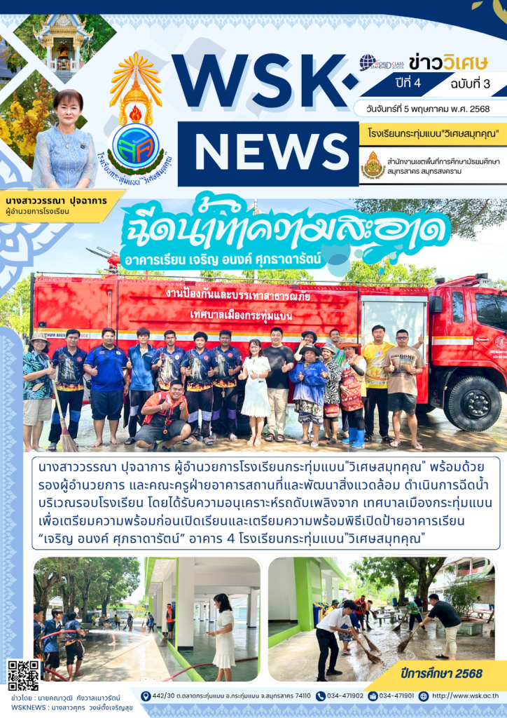 นางสาววรรณา ปุจฉาการ ผู้อำนวยการโรงเรียนกระทุ่มแบน”วิเศษสมุทคุณ” พร้อมด้วยรองผู้อำนวยการ และคณะครูฝ่ายอาคารสถานที่และพัฒนาสิ่งแวดล้อม ดำเนินการฉีดน้ำบริเวณรอบโรงเรียน โดยได้รับความอนุเคราะห์รถดับเพลิงจาก นายกเทศมนตรีเมืองกระทุ่มแบน เพื่อเตรียมความพร้อมก่อนเปิดเรียนและเตรียมความพร้อมพิธีเปิดป้ายอาคารเรียน “เจริญ อนงค์ ศุภธาดารัตน์” อาคาร 4 โรงเรียนกระทุ่มแบน”วิเศษสมุทคุณ”